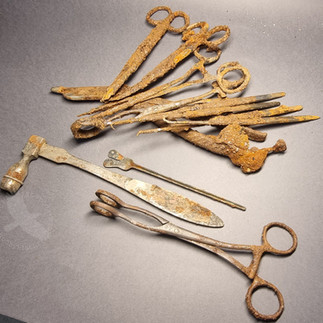 The ditch had been burned and sometimes a nicely melted bottle or tube surfaced. I found the bottom of the ditch and there I dug out a handfull of medical tools and instruments. But it was late afternoon by now and I had to get on my feet and find the car, so the rest of the pit will have to wait for another day, maybe tomorrow :)