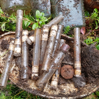 The hours went by and I had dug through the pit. I had dug up a lot of the track link brackets, a lot of food tins, some small bottles but only one large bottle this time, toothpaste tubes and a few padlocks. I also found a knife, an axe, a field torch, some rifle ammo and several medical ampoules, all empty.