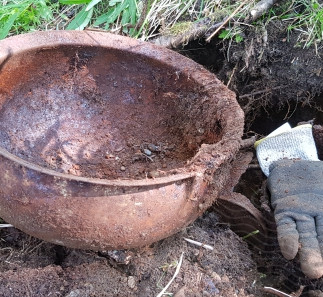 We dug out a big fire pit containing a ton of uniform buttons, crate- and wagon parts to start with, before we went deeper into the forest.